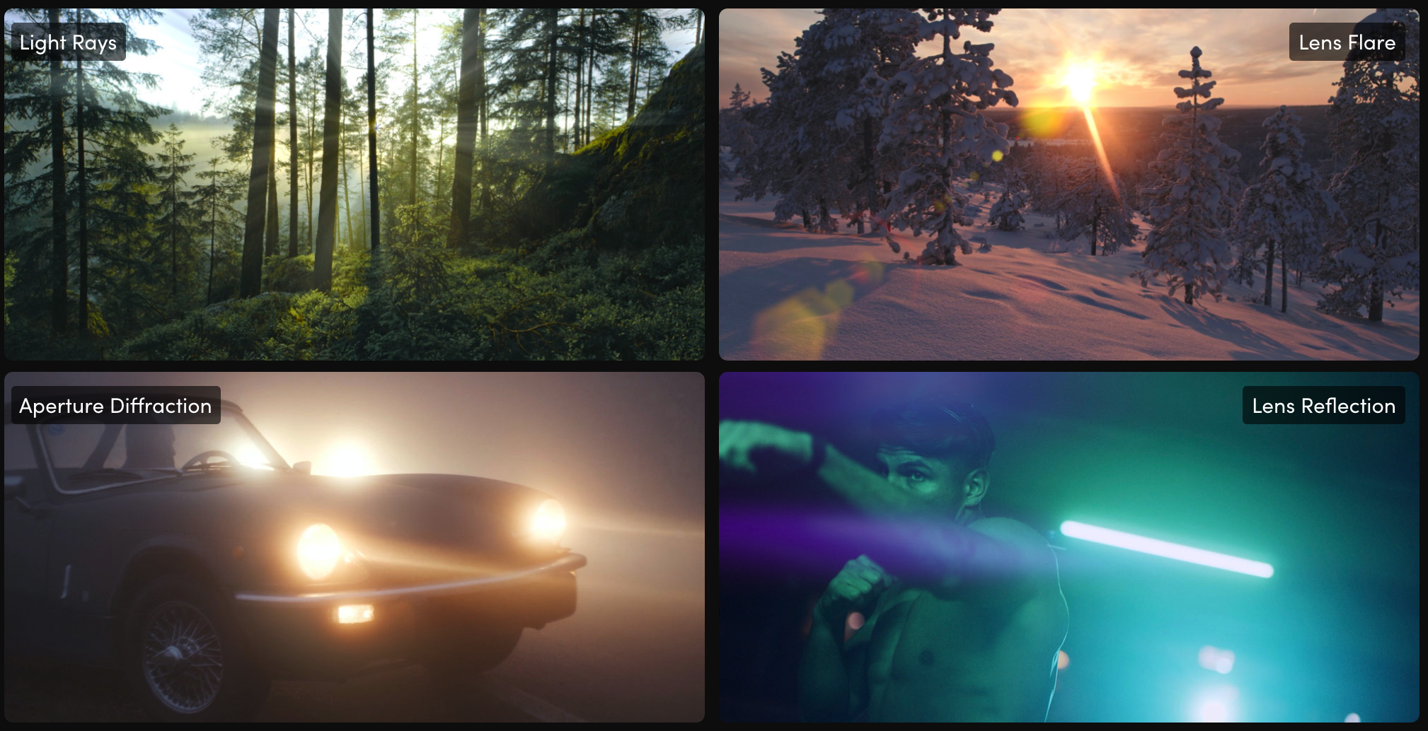 In addition to color correction and creative grading tools, the color page features plug-ins and tools for adding extremely realistic, organic lighting effects to your footage. You get individual tools for aperture diffraction, glows, lens flares, lens reflections and light rays. Simply drag a Resolve FX light tool from the library onto an empty node and adjust its settings. You can use them to create subtle light bleeds, gentle light bounces off of a lens, heavenly glows, or dramatic lens flares that look like they were all shot in camera. There are even pre-sets that allow you to simulate the golden hour of late afternoon sun, instantly create car headlights, sci‑fi flares and much more!